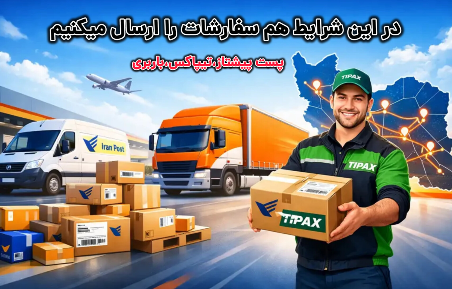 درود.با آرزوی سلامتی برای مردم شریف ایران،به اطلاع میرساند سفارشات فروشگاه همچنان روزانه از طریق پست،تیپاکس و باربری در حال ارسال است و مشکلی برای ارسال سفارشات وجود ندارد.