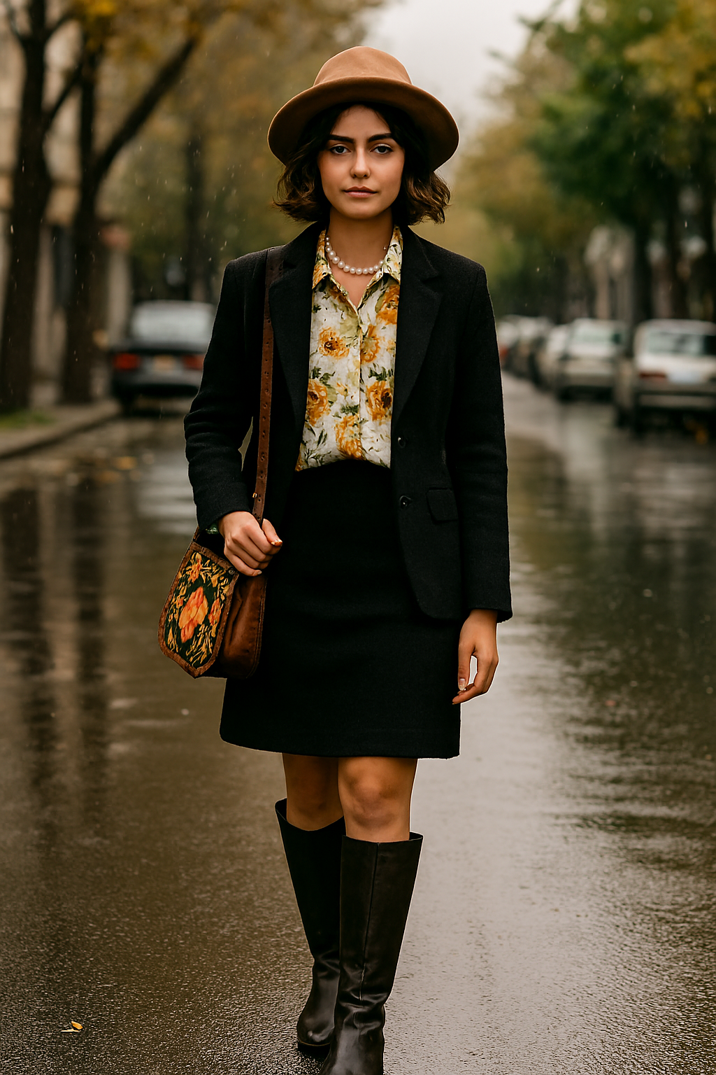 ۱. مینیمال: مشکی تمام با زر طلایی. ۲. بوهو: دامن چیندار با شال فرندلی. ۳. گرانج: چرم با بوت کثیفنما. هشتگ: #کت_دامن_زمستانی