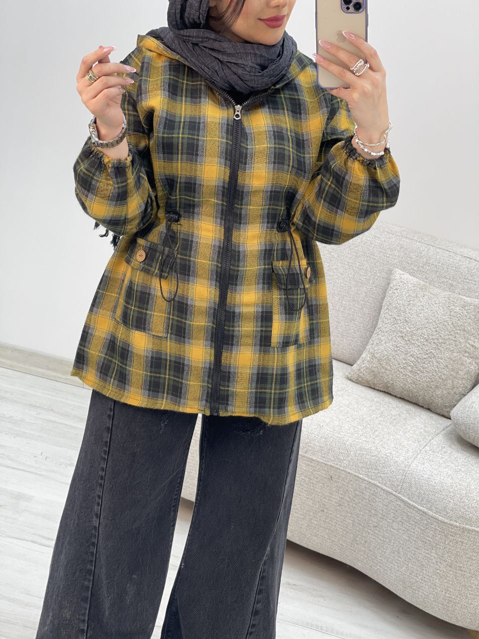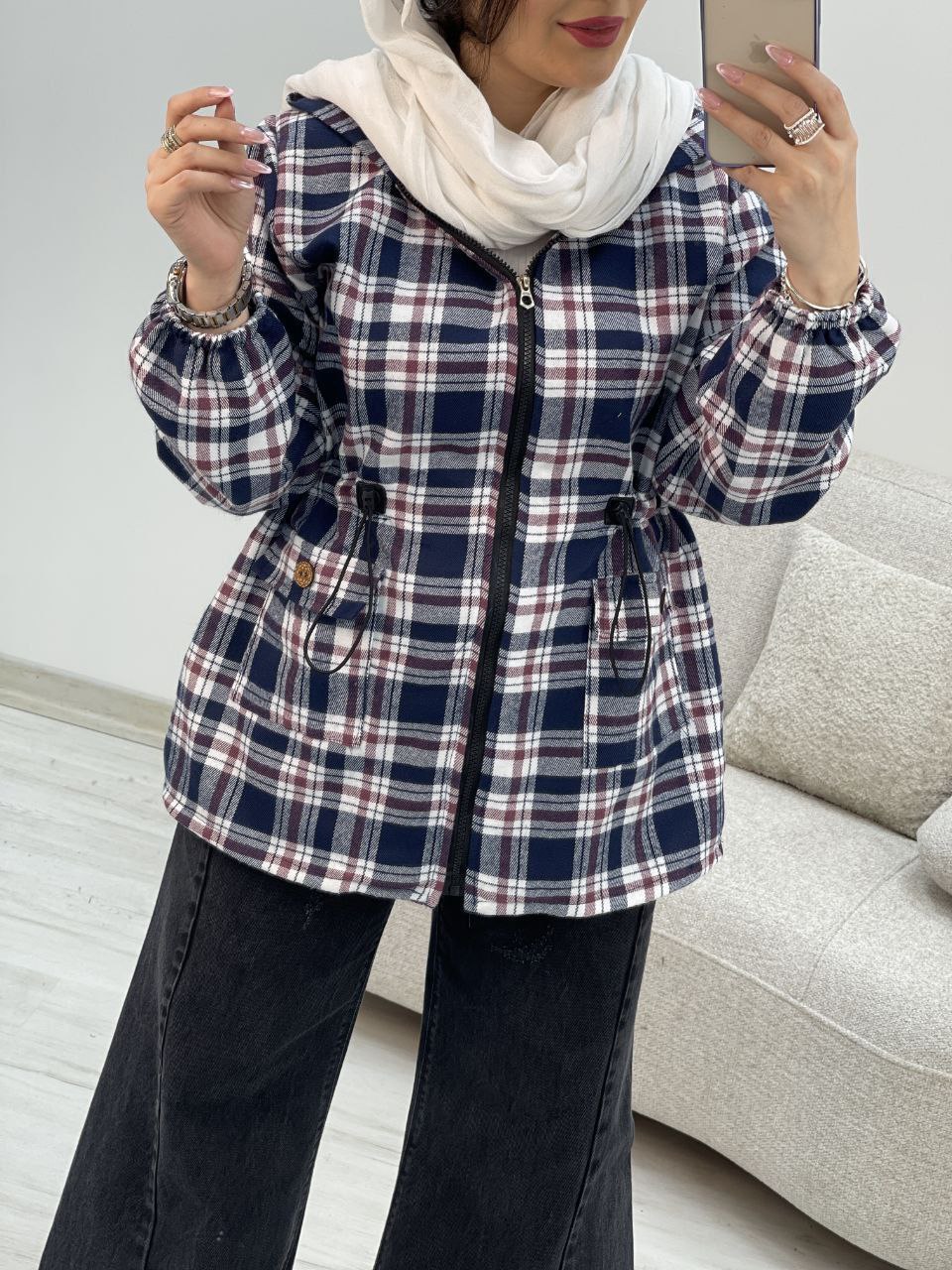 توضیحات پالتو زنانه چهارخانه مدل کمرگت