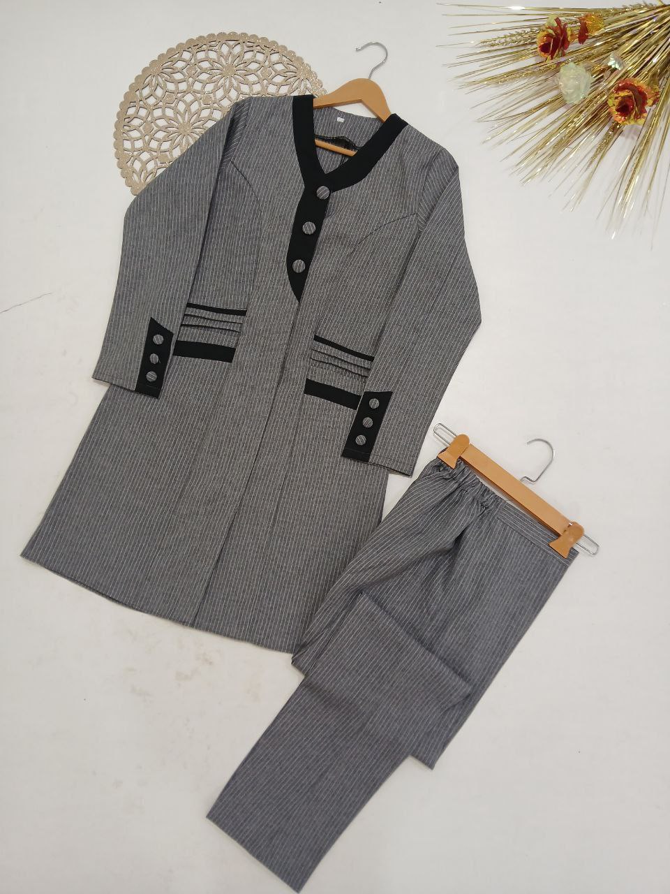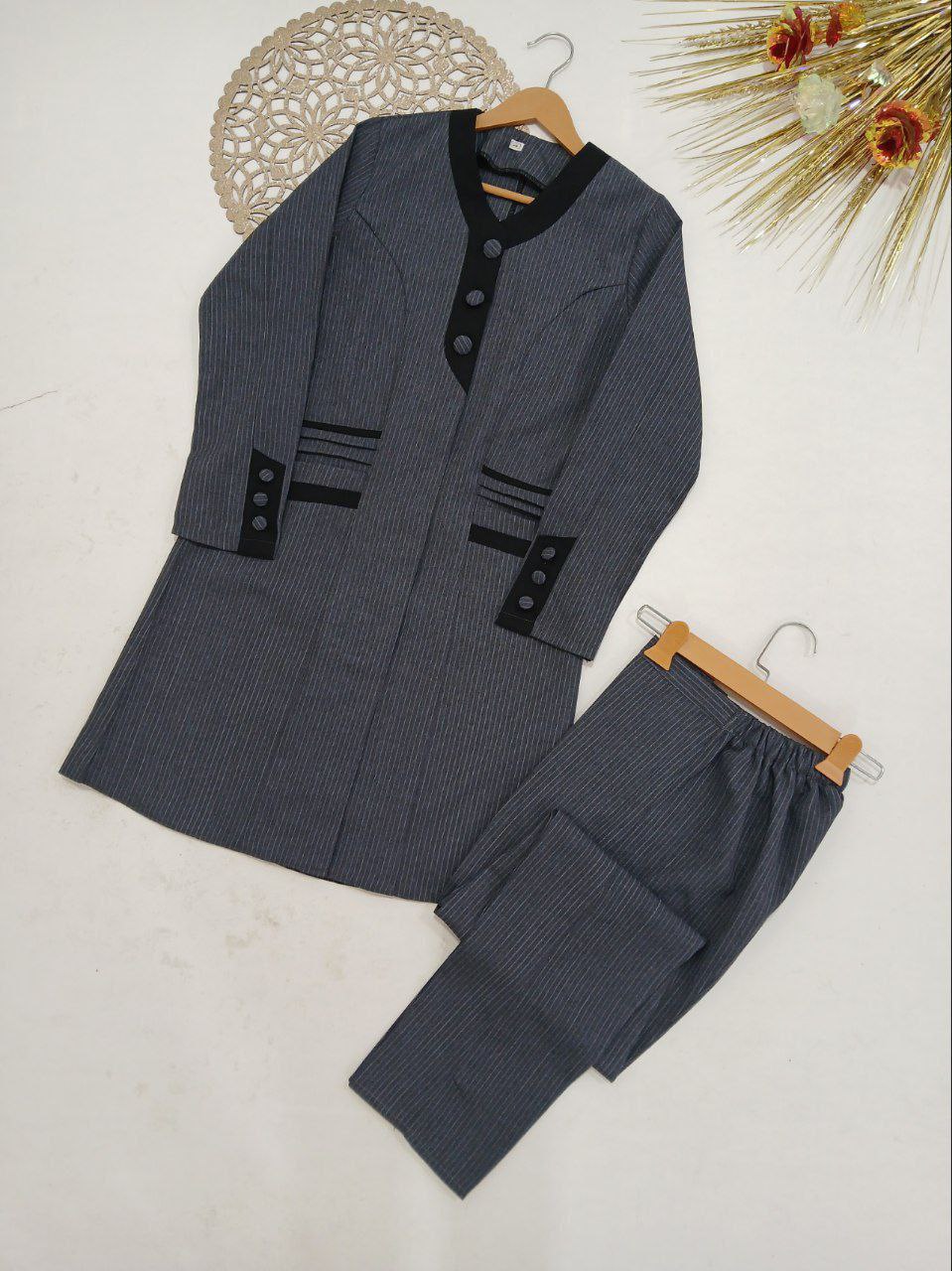 این ست اداری نه تنها ظاهری رسمی و شیک به شما میبخشد، بلکه با طراحی هوشمندانه و پارچه باکیفیت، راحتی و اعتماد به نفس را در طول روز تضمین میکند. انتخابی عالی برای جلسات کاری، محیطهای اداری و حتی موقعیتهای رسمی که نیاز به پوششی مرتب و جذاب دارید.