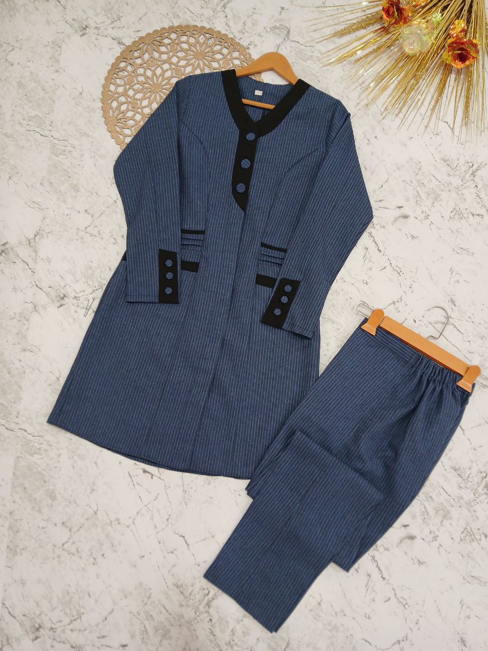 دوخت مزونی حرفهای: ظرافت در جزئیات و برشهای دقیق باعث میشود این ست جلوهای خاص و متفاوت داشته باشد.