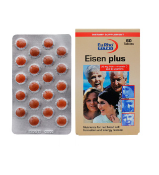 قرص آهن آیزن پلاس یوروویتال (Eisen Plus Eurho Vital) یکی از مکملهای موثر برای تامین آهن مورد نیاز بدن و کمک به درمان کمخونی ناشی از فقر آهن است. این مکمل با داشتن ترکیبی از آهن، ویتامین C، ویتامینهای گروه B و فولیک اسید به بهبود تولید گلبولهای قرمز خون و افزایش سطح انرژی بدن کمک میکند.