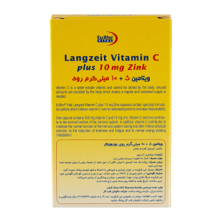 کپسول ویتامین C پلاس زینک 10 میلیگرم یوروویتال 60 عددی