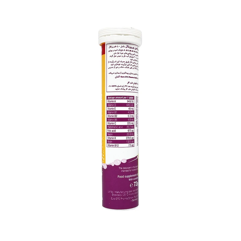 قرص جوشان مولتی ویتامین یوروویتال بسته 20 عددی تامین ویتامینها و مواد معدنی ضروری، تقویت انرژی و نشاط، جبران کمبود ریزمغذیها، مصرف روزانه پس از غذا
