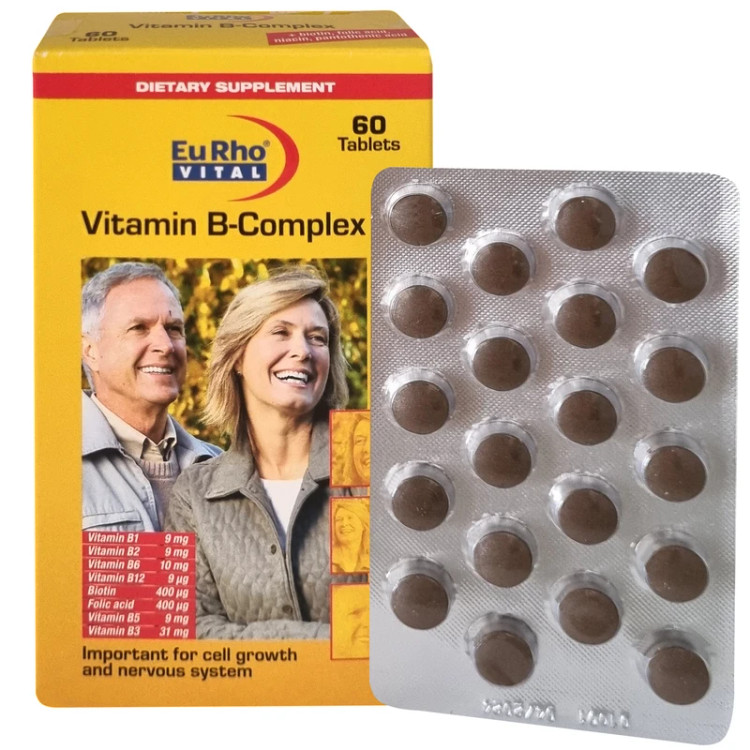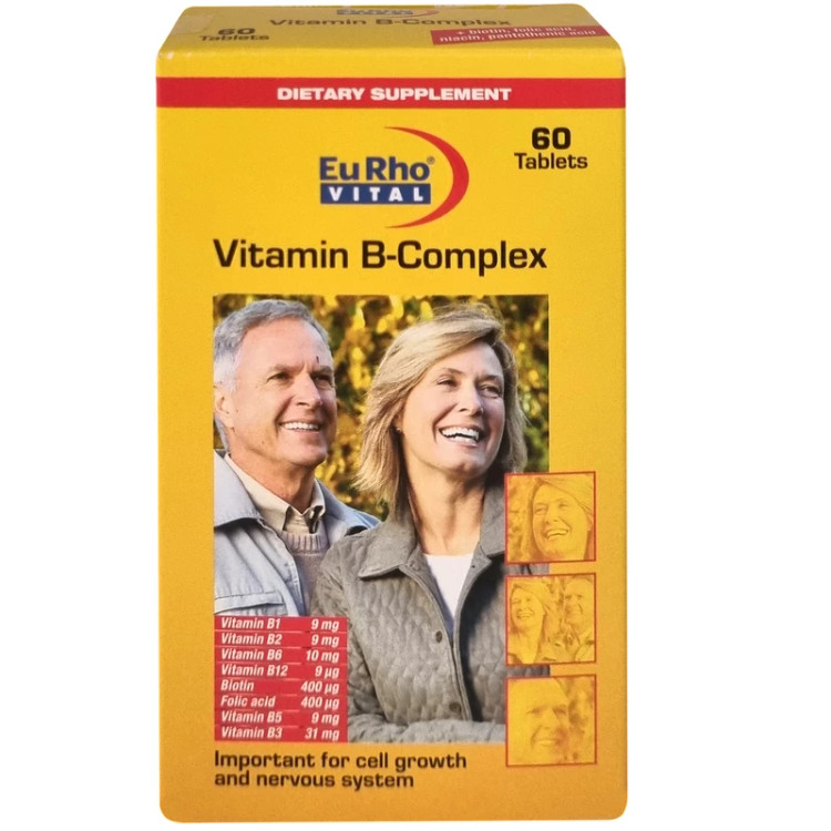 قرص ویتامین ب کمپلکس یوروویتال 60 عددی با ویتامینهای گروه B و فولیک اسید، حمایت از سلامت مغز و اعصاب، مناسب بزرگسال و کودک، ساخت آلمان
