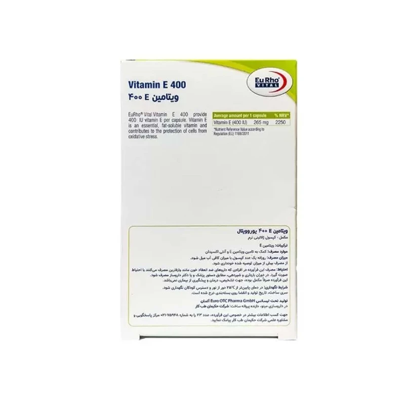 کپسول ویتامین E 400 واحد یوروویتال یک مکمل غذایی باکیفیت از برند معتبر Eurovital آلمان است که برای تأمین ویتامین E مورد نیاز بدن طراحی شده است. ویتامین E یکی از مهمترین آنتیاکسیدانهای محلول در چربی است که از سلولها در برابر آسیبهای ناشی از رادیکالهای آزاد محافظت میکند.